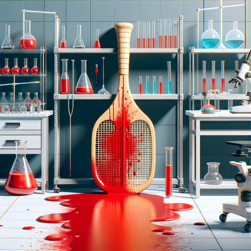 Source: Stock photo of bloody pickleball racket in laboratory from sportsequipmentstockphotos.com, Your source for sport equipment stock photos (tm)